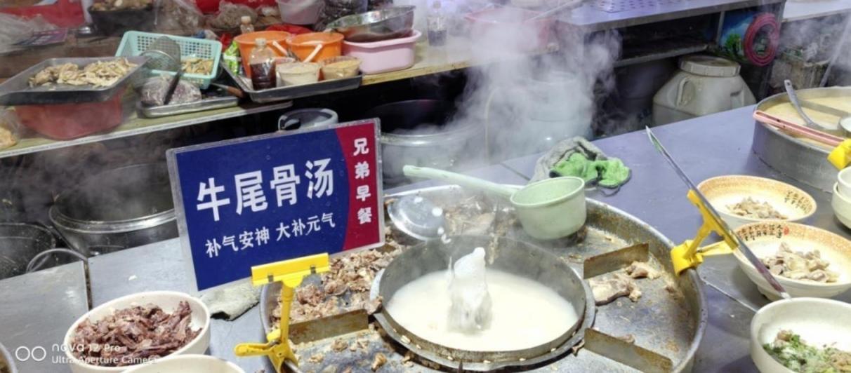 早市里牛尾骨汤熬出了牛奶色。孟海鹰/摄