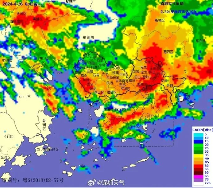 据@深圳天气,瞻望光明区、宝安区(松岗、石岩、福永、沙井、航城、福海、新桥、燕罗街谈)、龙岗区(龙岗、坪地、龙城、平湖、宝龙街谈)、龙华区(大浪、龙华、不雅湖、福城、不雅澜街谈)和坪山区(龙田街谈)将执续出现强降雨,深圳市局势台04月26日07时55分在上述区域发布暴雨红色预警信号,深圳全市干涉暴雨伏击刺目景况。